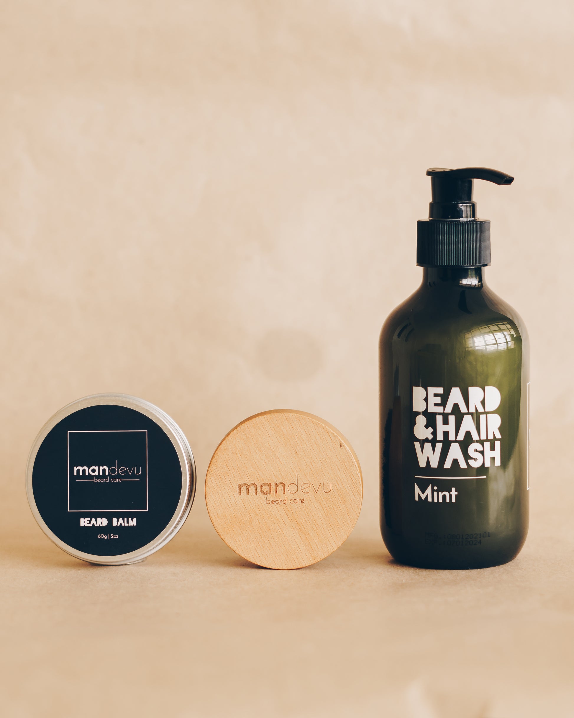 Introducing the MANDEVU BASICS TRIO - this includes a WASH, BALM, and BRUSH. Made with natural ingredients, nourish and protect your hair with MANDEVU for healthier, more manageable facial hair.