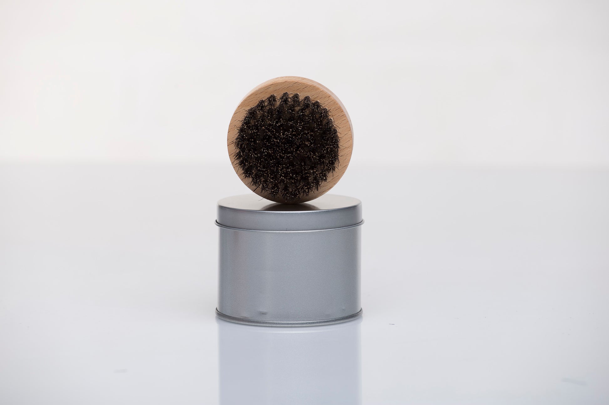 \nThe Mandevu Beard Brush comes in a round shape brush that comes in a tin that is great for storing after use and a perfect travel size.